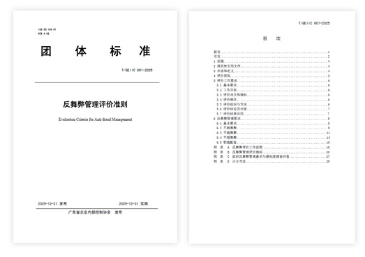 《反舞弊管理评价准则》(T/GEIIC 001-2025)是由广东省企业内部控制协会发布的一项团体标准,旨在为各类组织提供一套标准化、系统化的反舞弊管理评价方法。 该准则以PDCA循环为核心方法论,围绕"不敢舞弊""不能舞弊""不想舞弊"三个维度,构建了涵盖政策制定、执行落地、效果检查及持续优化的系统框架,引导组织形成全面、规范、有效的反舞弊管理机制。